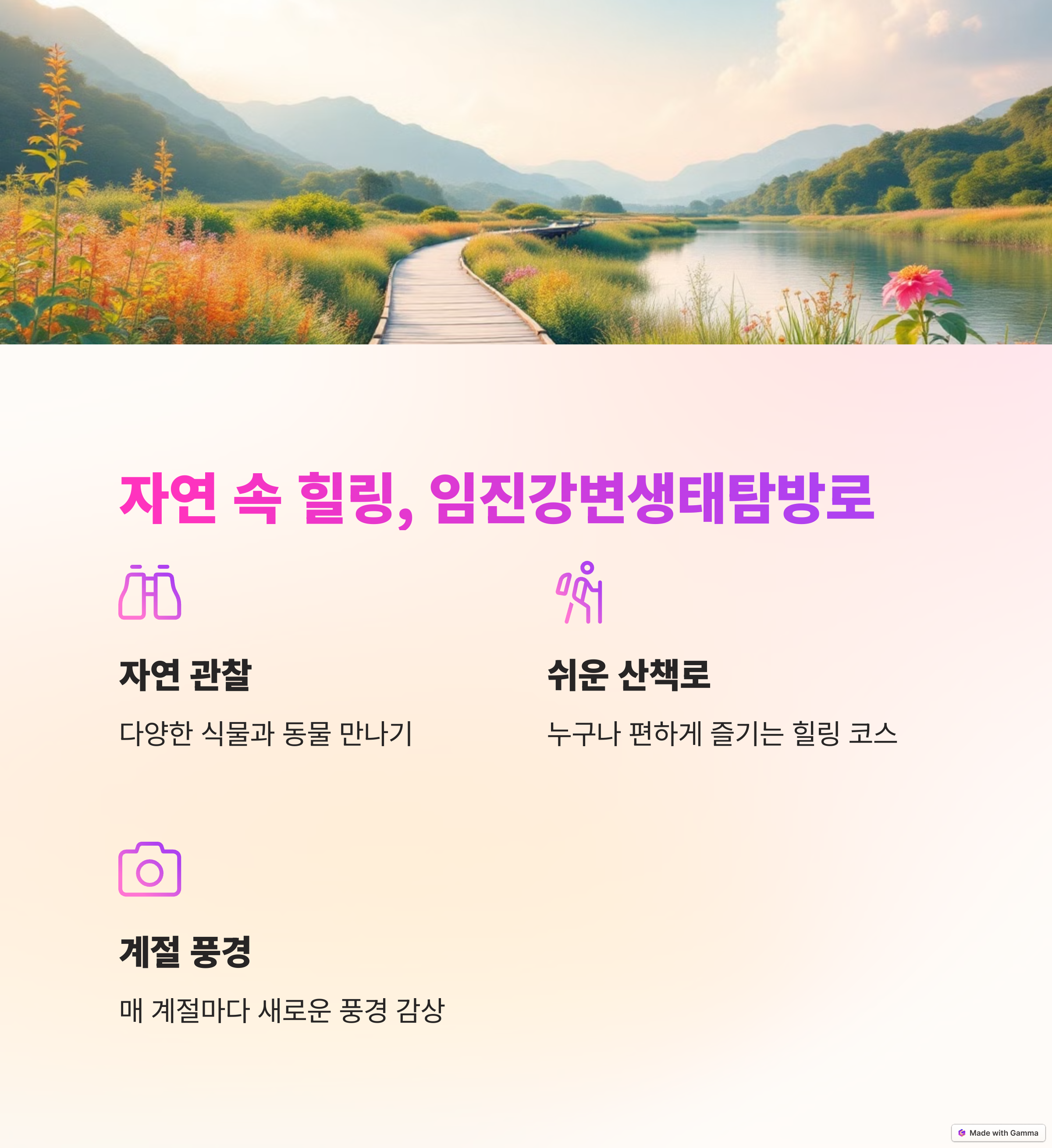따뜻한 봄바람을 맞으며 바람의 언덕을 거닐고, 임진강변을 따라 역사적 유적을 탐방하는 경험은 분명 특별한 추억이 될 것입니다.
