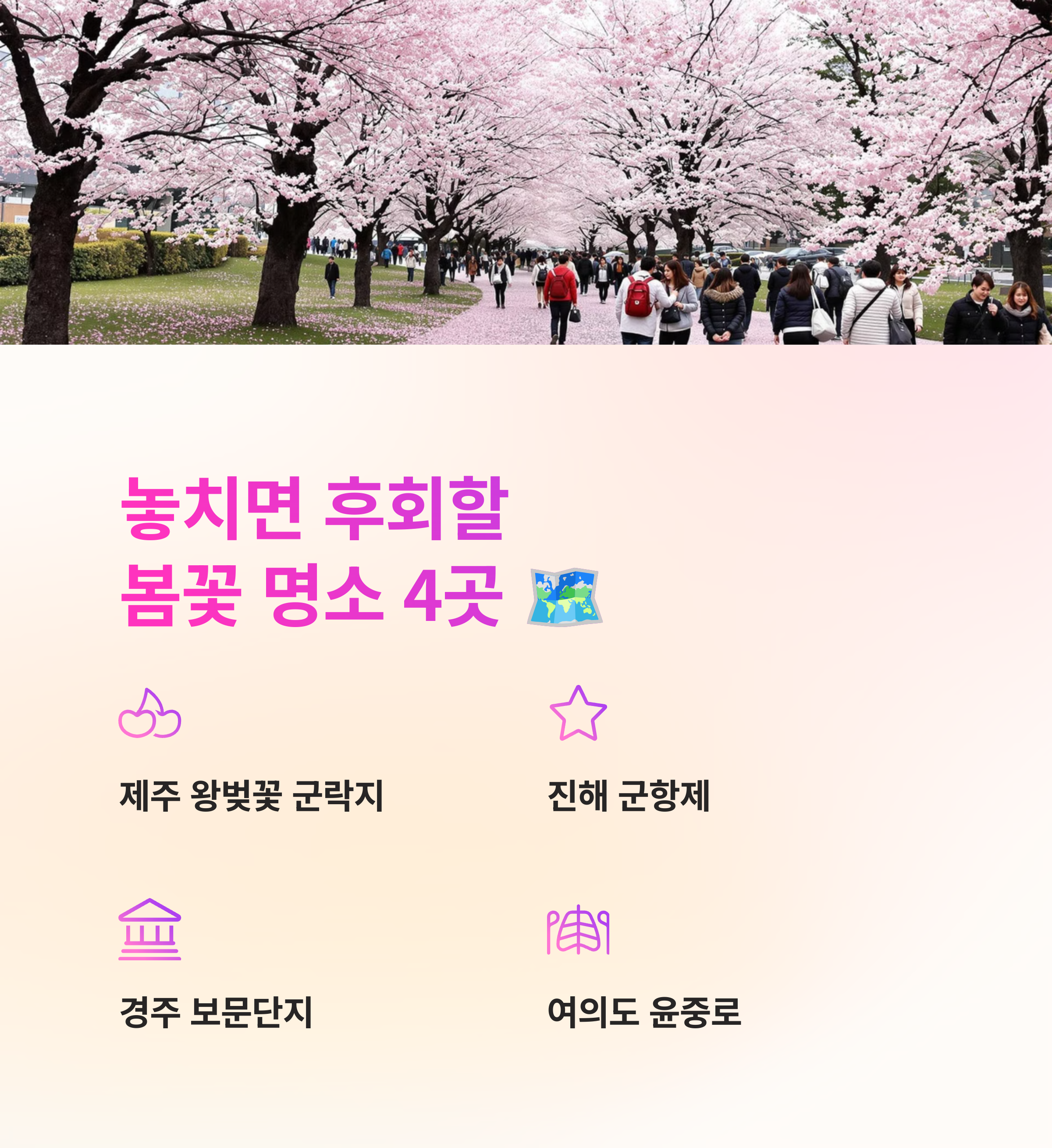 여러분은 이번 봄 어디로 떠나실 계획인가요? 가장 추천하는 봄꽃 명소를 댓글로 공유해 주세요!