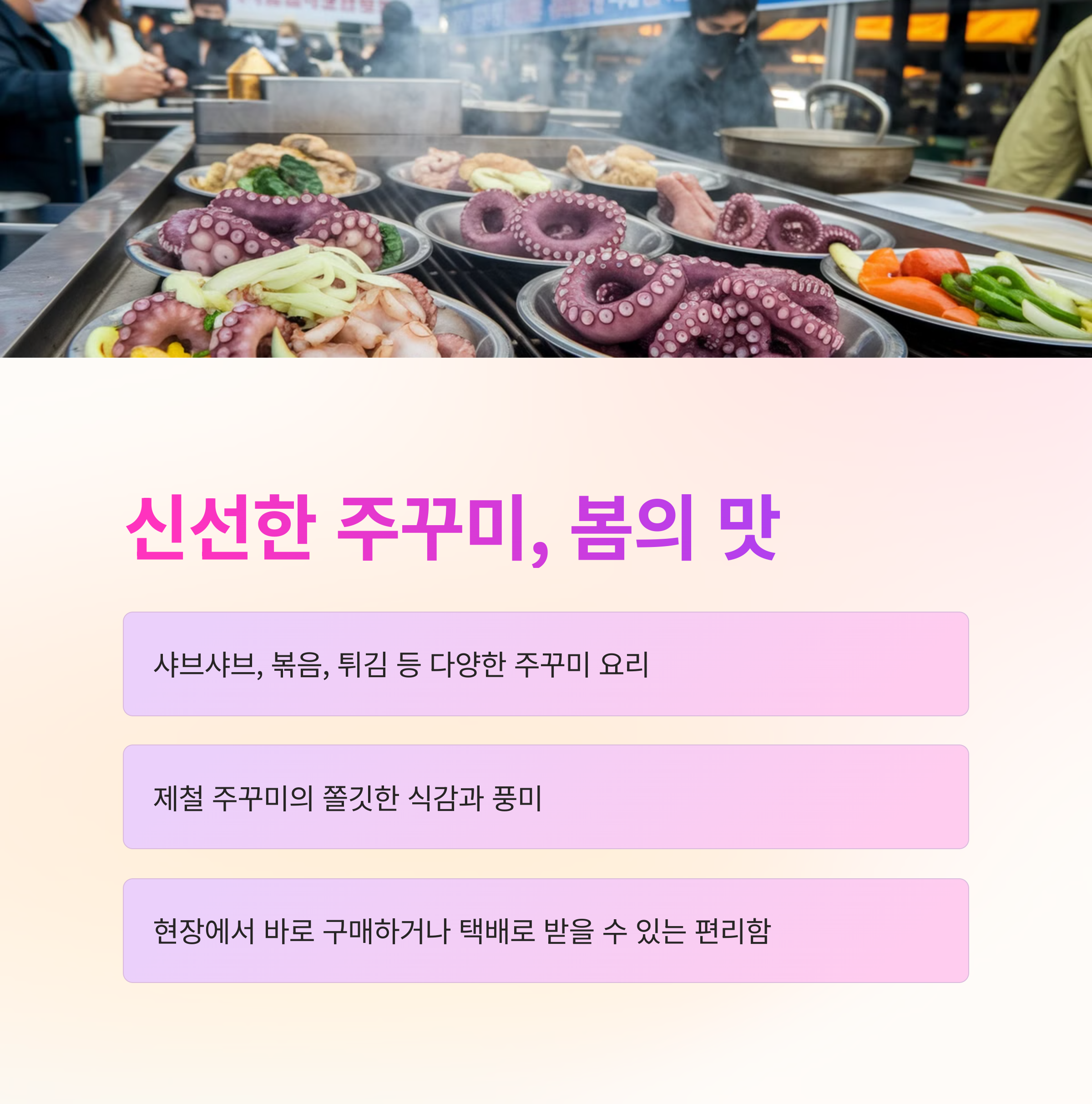 동백꽃이 만개하는 3월은 아름다운 풍경을 선사하며, 동시에 제철 주꾸미를 맛볼 수 있는 최고의 시기이기도 합니다.