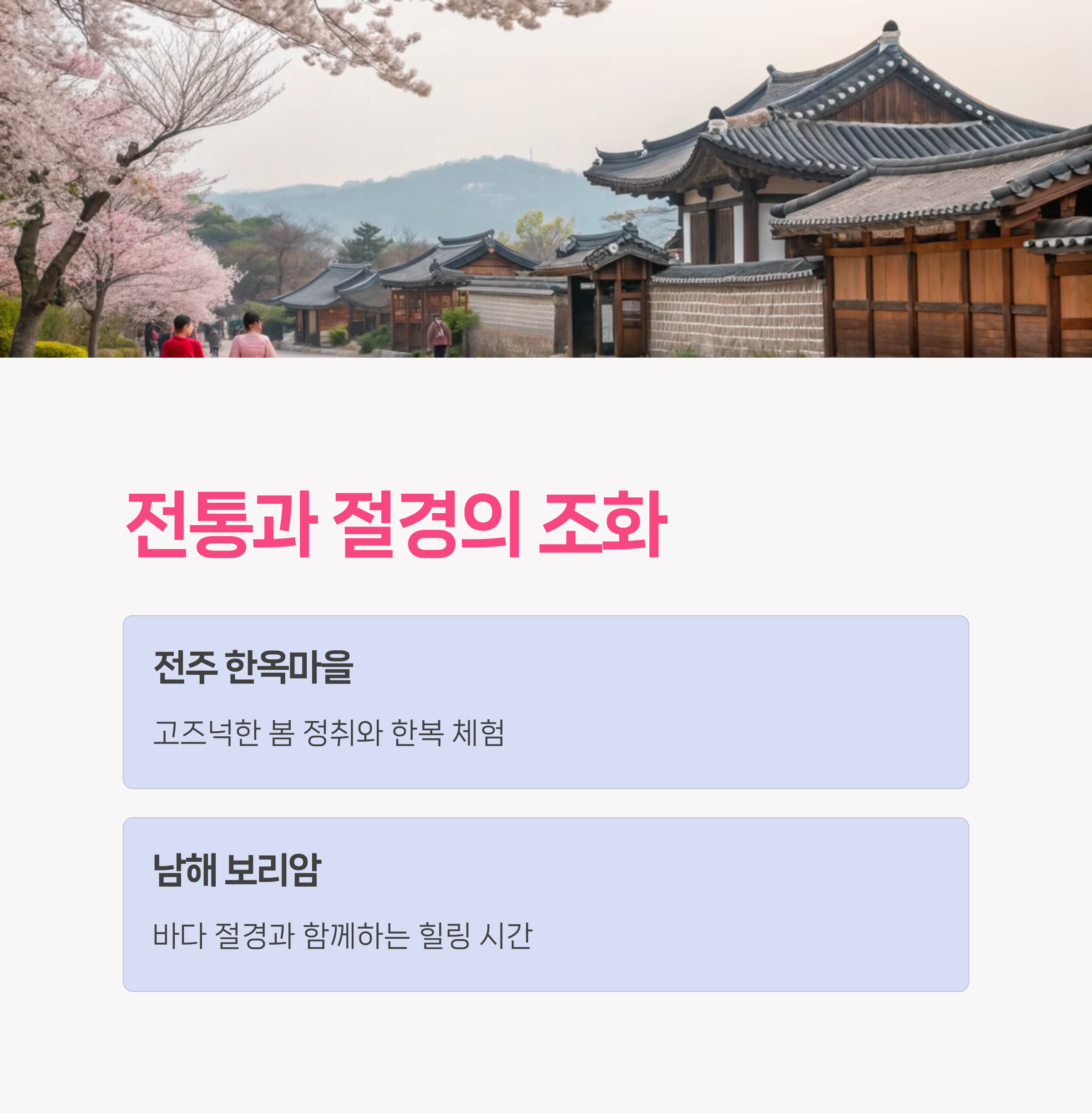 | 전주 | 한옥마을 감성 여행 | 3월 내내 가능 |