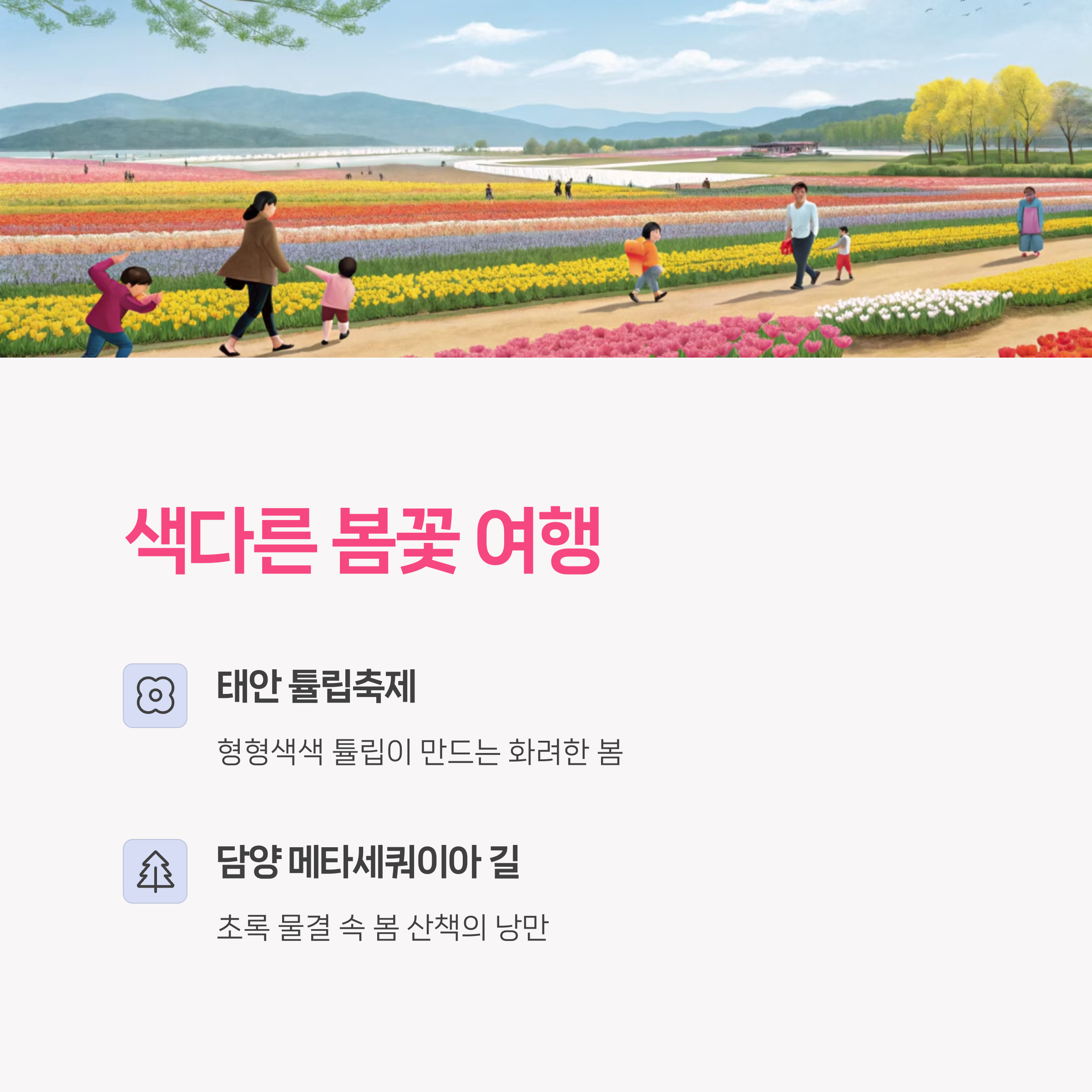 이번 봄, 어디로 여행을 떠나고 싶으신가요? 여러분이 추천하는 3월의 국내 여행지를 댓글로 남겨주세요! 😃