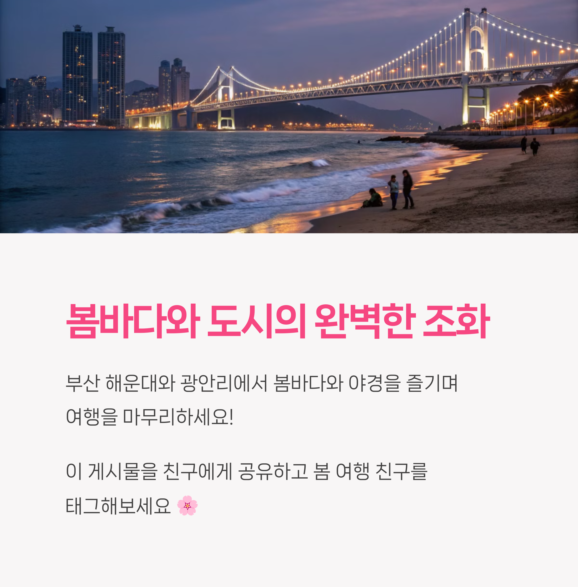 | 부산 | 해운대 & 광안리 야경 | 3월 내내 가능 |