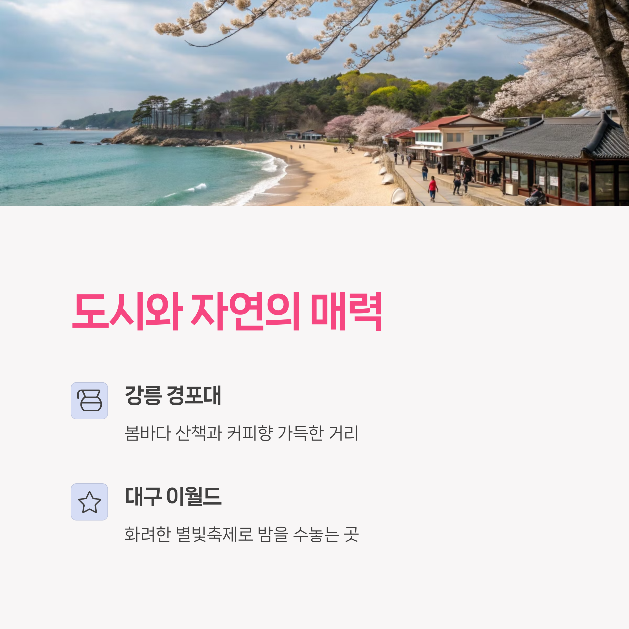 → 봄꽃을 즐기고 싶다면 제주도와 경주가 좋고, 감성적인 도시 여행을 원한다면 전주를 추천합니다.